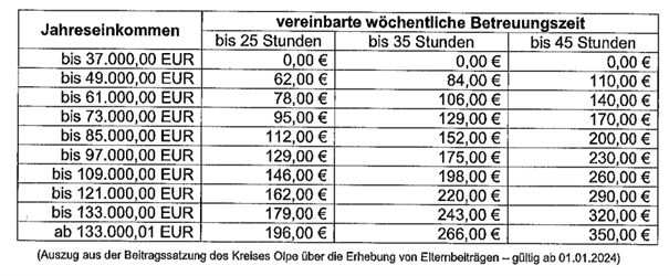 (Auszug aus der Beitragssatzung des Kreises Olpe über die Erhebung von Elternbeiträgen)